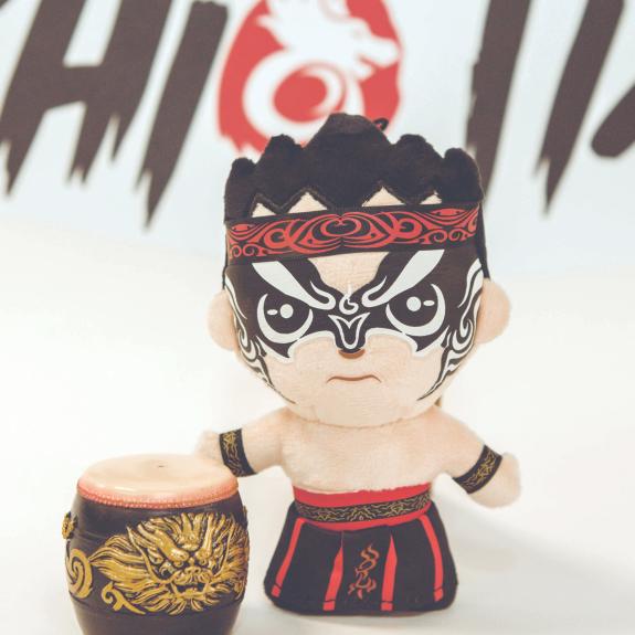 九天民俗技藝團一直以來以撼動人心、熱烈澎湃的鼓樂演出聞名,「鼓手」也成為了九天的代表形象。「鼓手娃娃」一如九天團員演出造型,穿著九天全套表演服、畫著專屬九天的打鼓臉譜,當你將娃娃帶在身邊,就如同九天的鼓聲時時在激勵著你、陪伴著你!